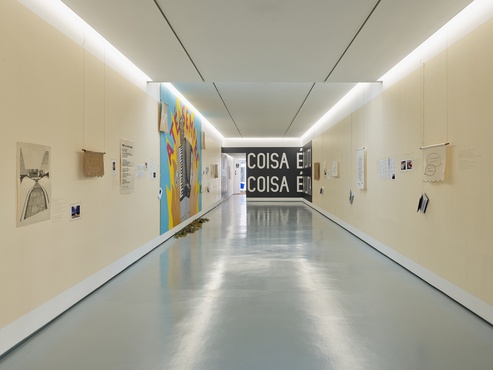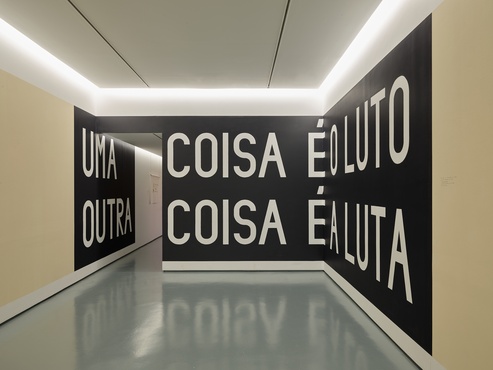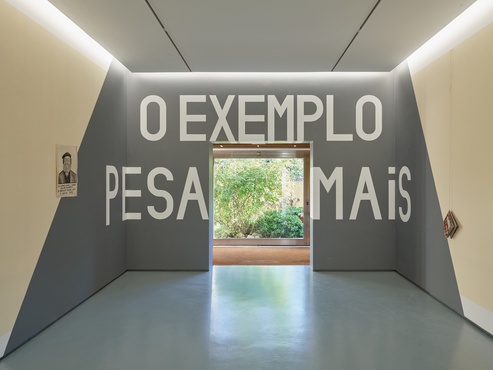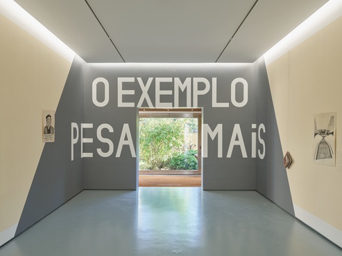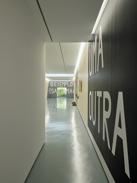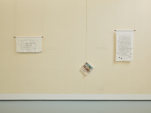 Como é comum na sua prática, Rigo intervém diretamente no espaço arquitectónico da galeria, com três murais, e apresenta uma série de desenhos e bordados onde o mundo da escrita, da fala e do olhar se fundem. Marcado pelo pensamento do seu conterrâneo António Aragão (1921-2008) com quem conviveu muito na adolescência, para Rigo também “Ver é igual a ler e ler igual a ver. Nem mais imagem para ser melhor visto, nem mais literatura para ser mais lido.”*